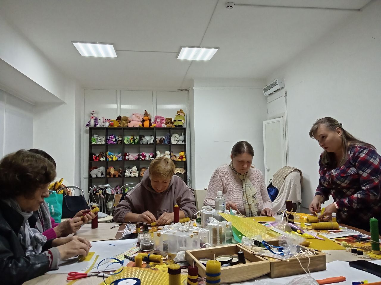 Жінки створювали власні «ресурсні свічки» — теплі символи внутрішнього світла. Під час роботи з вощиною народжувалася не лише свічка, а й мить тиші, відновлення, ніжності до себе. Полум’я цих свічок — нагадування про здатність кожної жінки запалити світло у найтемніший час 💛