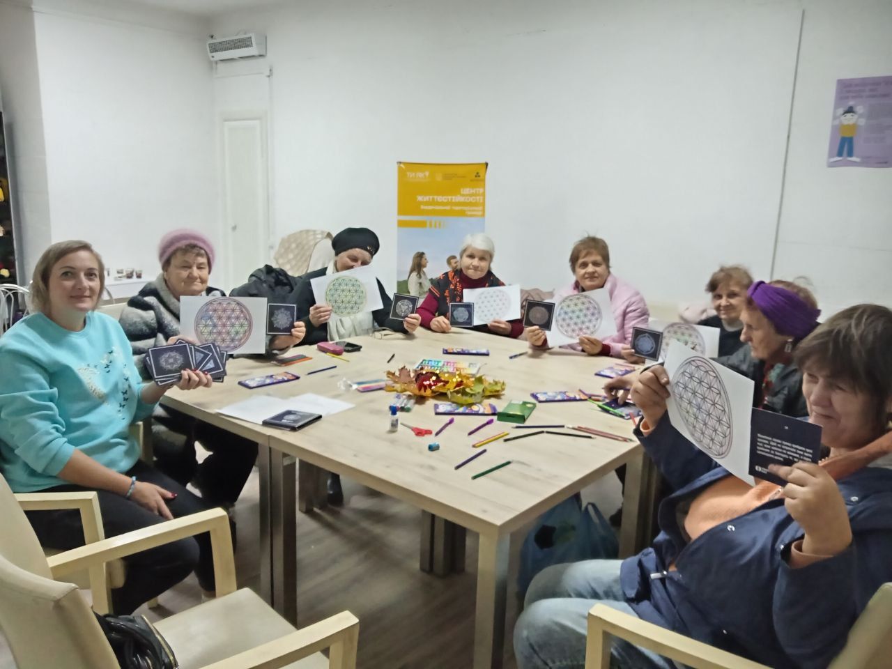 Для людей поважного віку відбулася тепла зустріч, де панувала атмосфера щирості, довіри й вдячності. Кожен створював свою ресурсну мандалу — символ балансу, любові та натхнення. У кольорах, лініях і символах учасники відкривали джерело внутрішнього спокою, відчуваючи, що сили, яких ми шукаємо, — вже є всередині 🌿