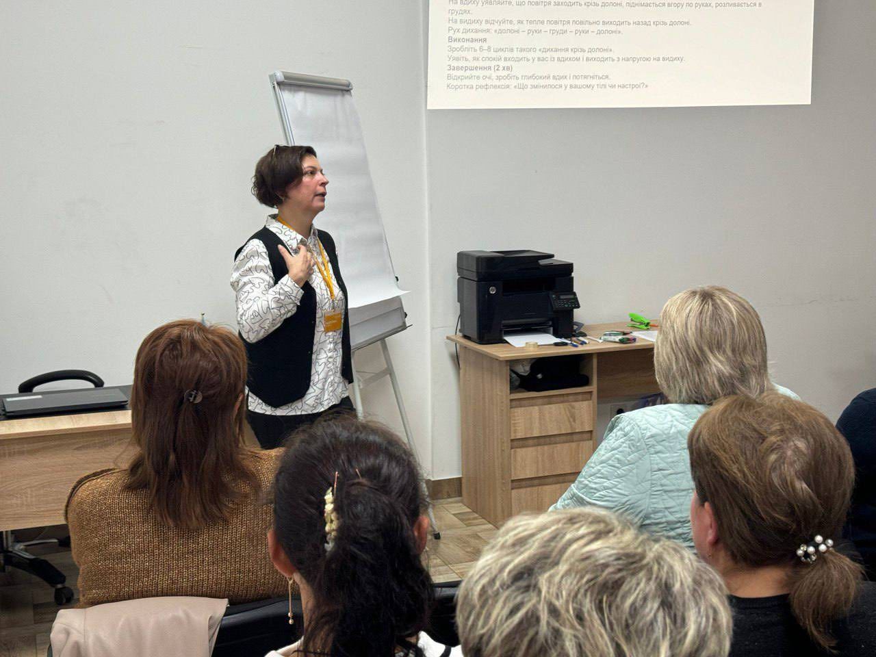 Значну увагу приділили темі збереження власного ресурсу. Фахівці та фахівчині першої лінії регулярно стикаються з сильними емоціями — страхом, гнівом, розпачем. Без належних навичок саморегуляції це підвищує ризик вторинної травматизації та вигорання.