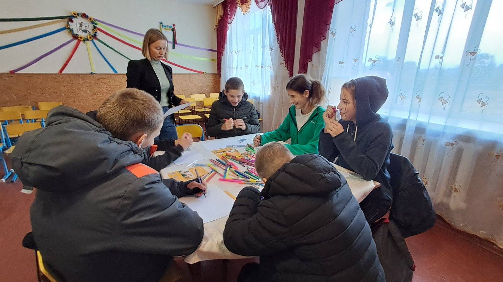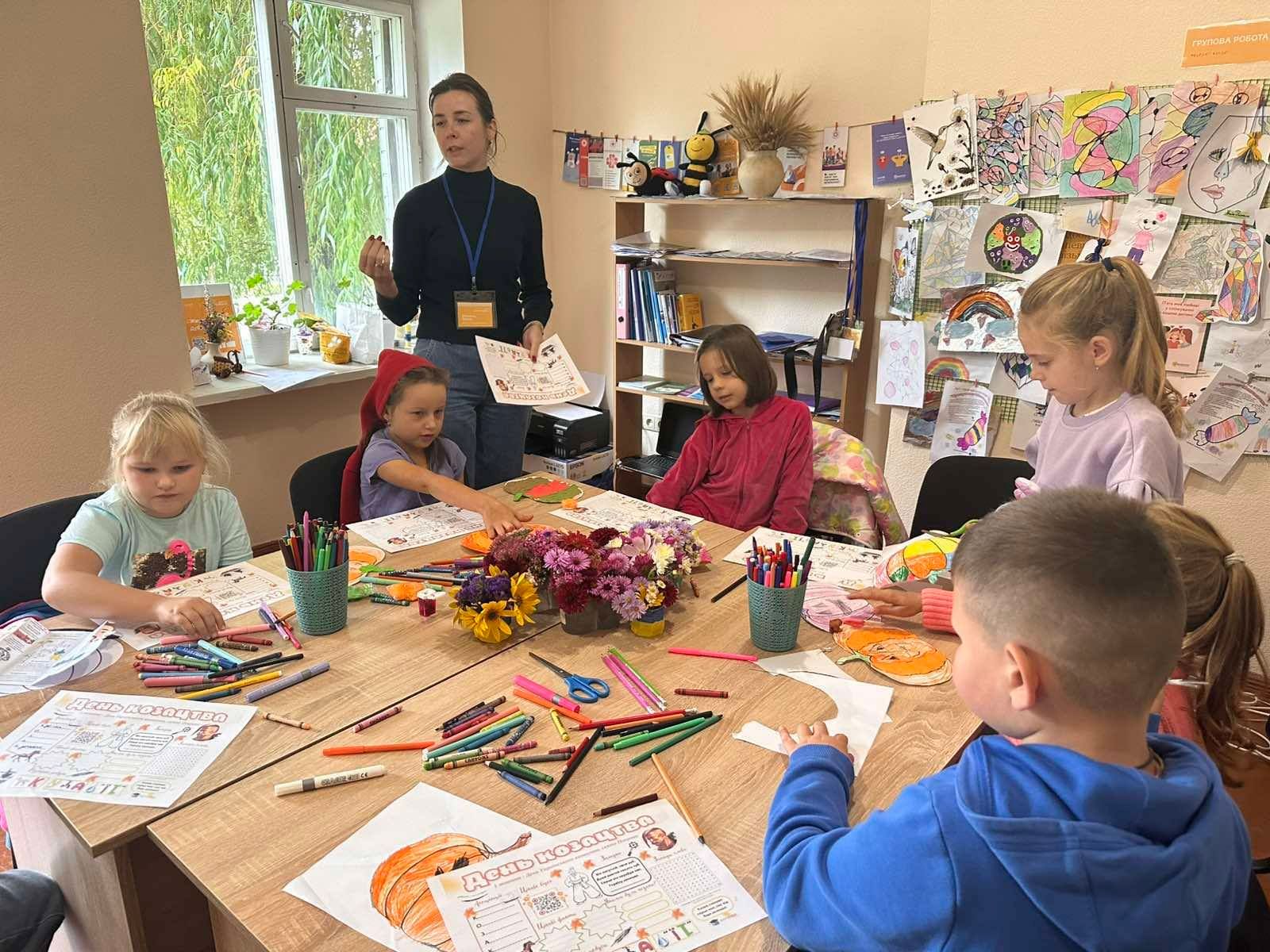 У психологічній майстерні підлітки досліджували власні страхи та вчилися їх долати. Вправа «Зім’ятий листок» стала ключовим моментом — зім’яті аркуші перетворювалися на малюнки, символи нових можливостей. Кожен знайшов свою «ресурсну фразу» — слова, що залишаються всередині як опора у хвилини сумнівів.