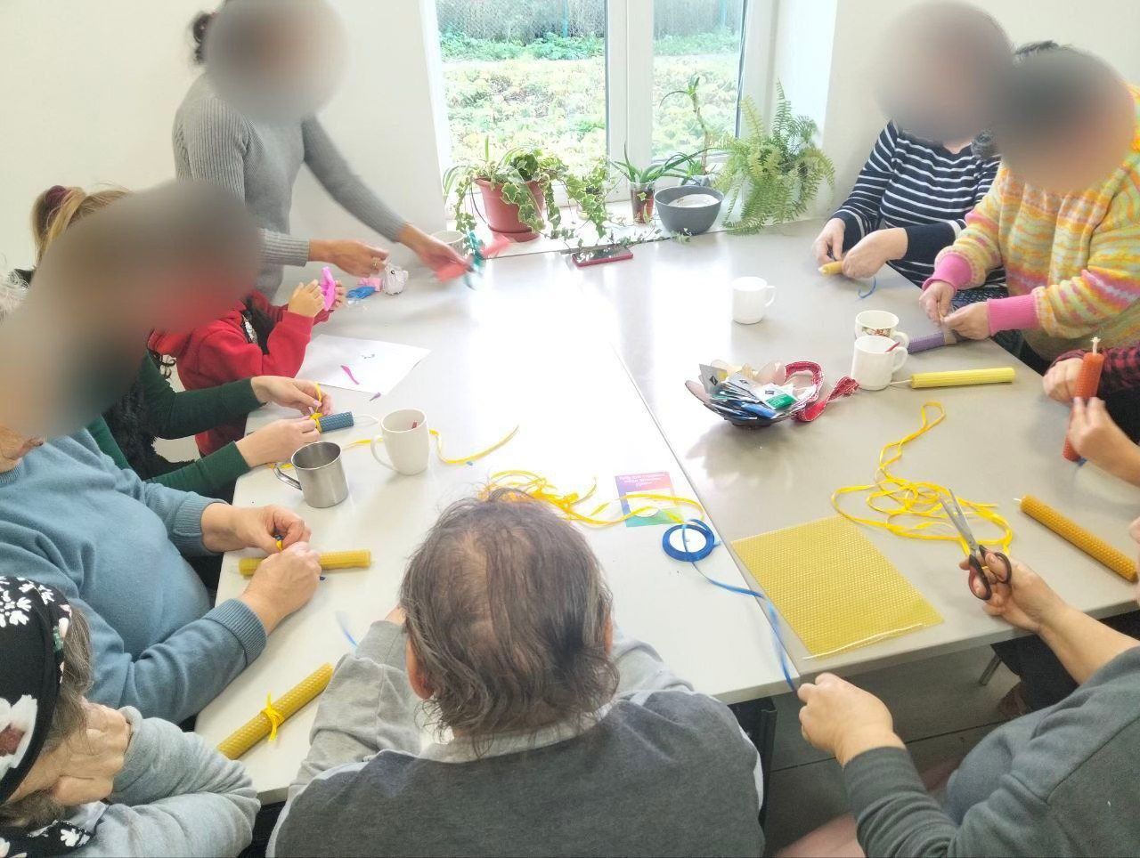 Особливою частиною заняття стало створення свічок із вощини Цей процес став метафорою внутрішнього світла, яке кожен може запалити в собі. Аромат меду, тепло рук і спільна праця допомогли учасникам відчути затишок і відновлення після емоційної втоми.