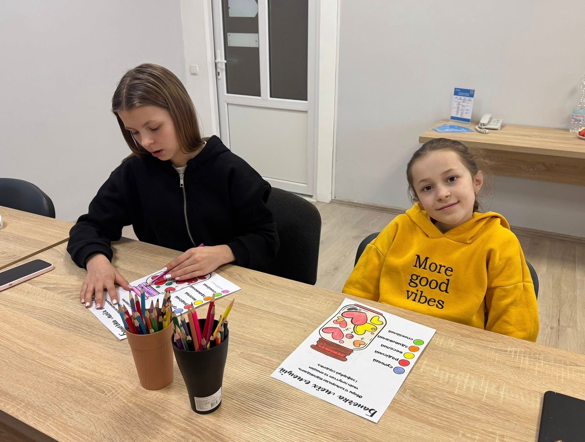 Під час зустрічі ми працювали з темою настрою та почуттів. У вправі «баночка емоцій» діти обирали кольори відповідно до свого стану, вчилися розпізнавати його та називати словами. Це допомагало краще усвідомити, що саме вони відчувають у конкретний момент і як на це реагують.