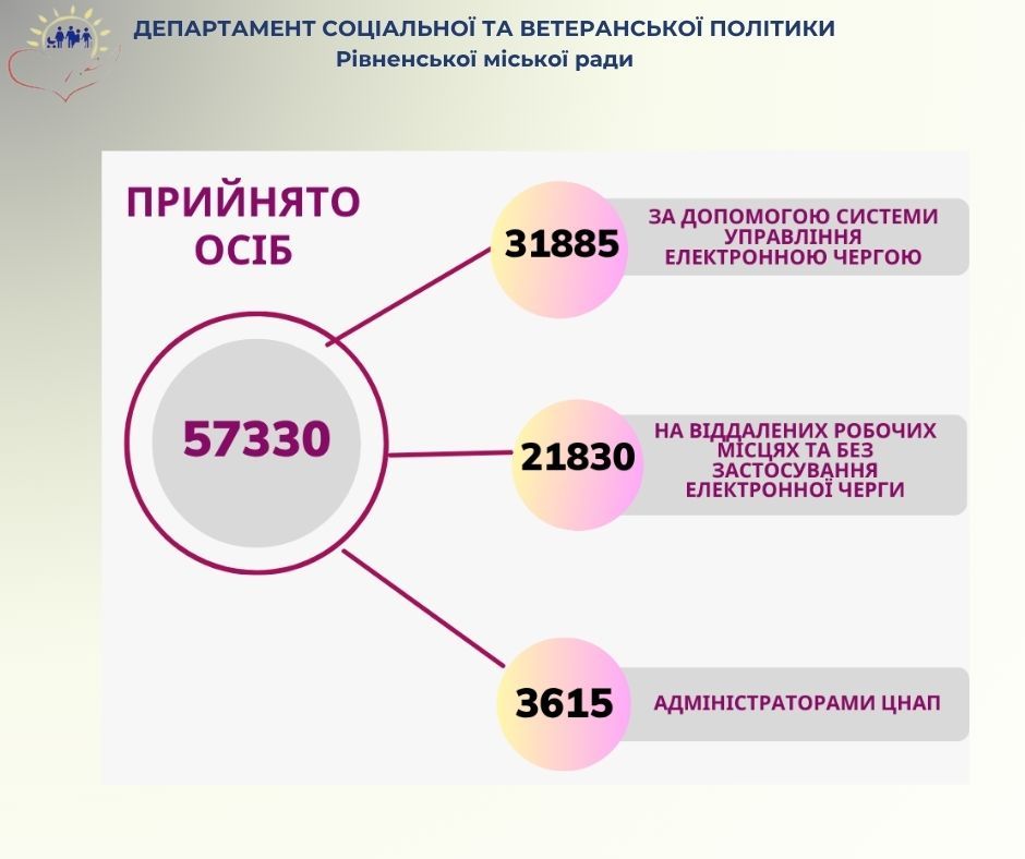За даними Департаменту соціальної та ветеранської політики Рівненської міської ради упродовж січня–вересня 2025 року понад 57 тисяч місцевих мешканців та новомістян громади зверталися за соціальними послугами.