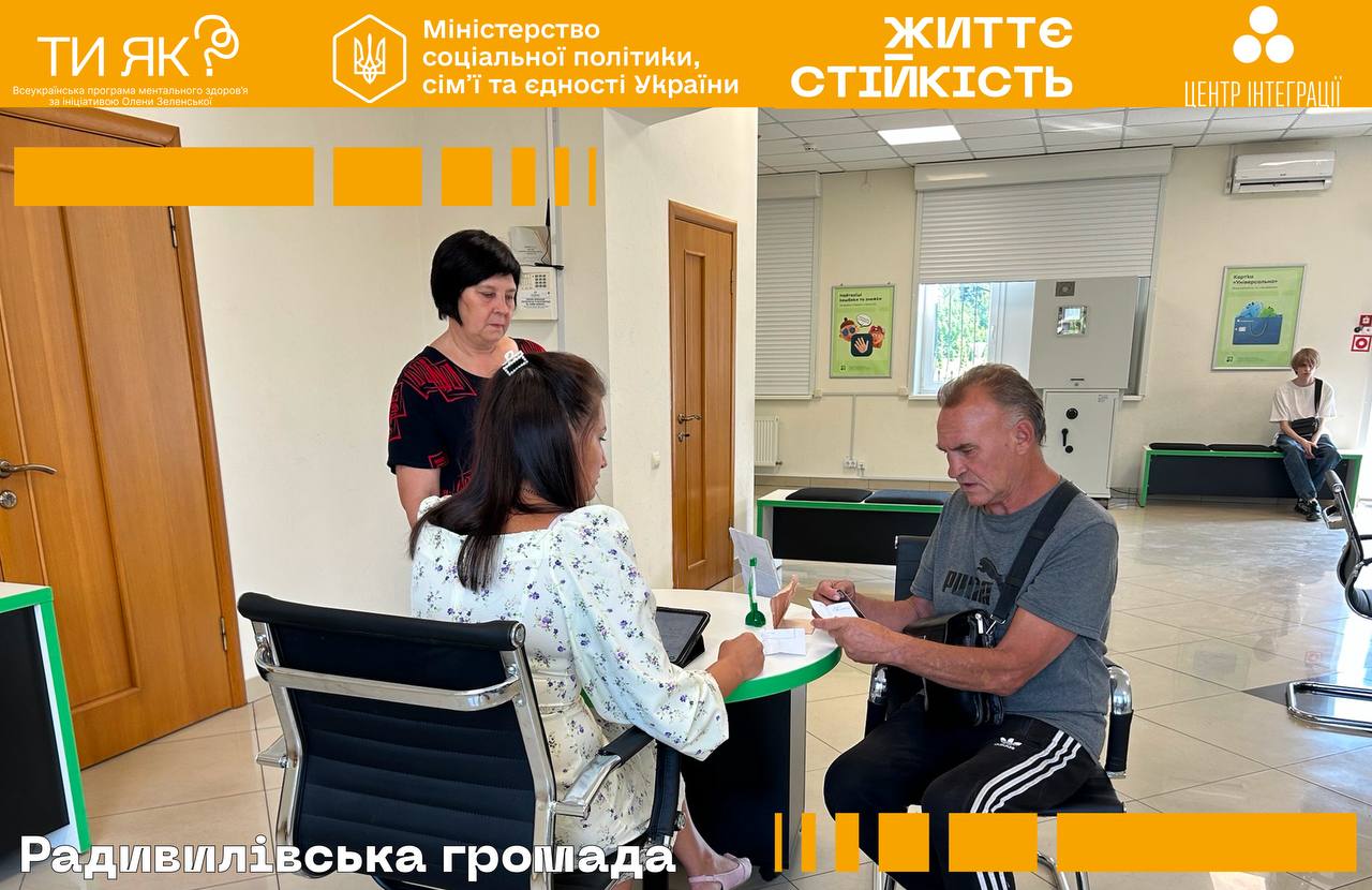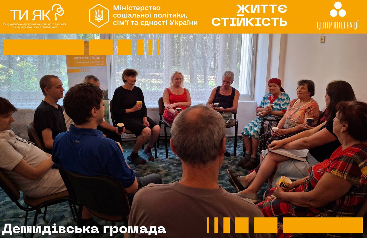 Центри життєстійкості – пріоритетний проєкт, що реалізує Міністерство соціальної політики, сім'ї та єдності України і є складовою Всеукраїнської програми ментального здоров'я Ти як? Першої леді Олени Зеленської, який у Рівненській, Біловодській, Варковицькій, Мирогощанській, Дубенській, Гощанській, Радивилівській, Млинівській, Демидівській територіальних громадах втілює ГО Центр Інтеграції.