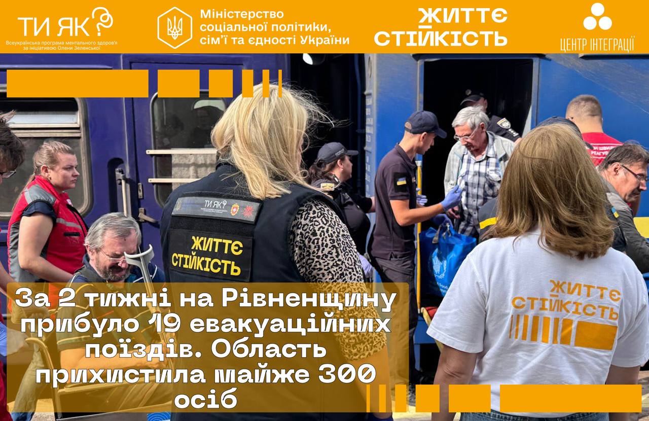 🔸 За три тижні Рівненщина стала прихистком майже для трьохсот осіб. З 21 серпня область знову приймає евакуаційні поїзди з Донецької області. Станом на сьогодні прибуло 19 рейсів, якими з прифронтових територій приїхало 294 людини.